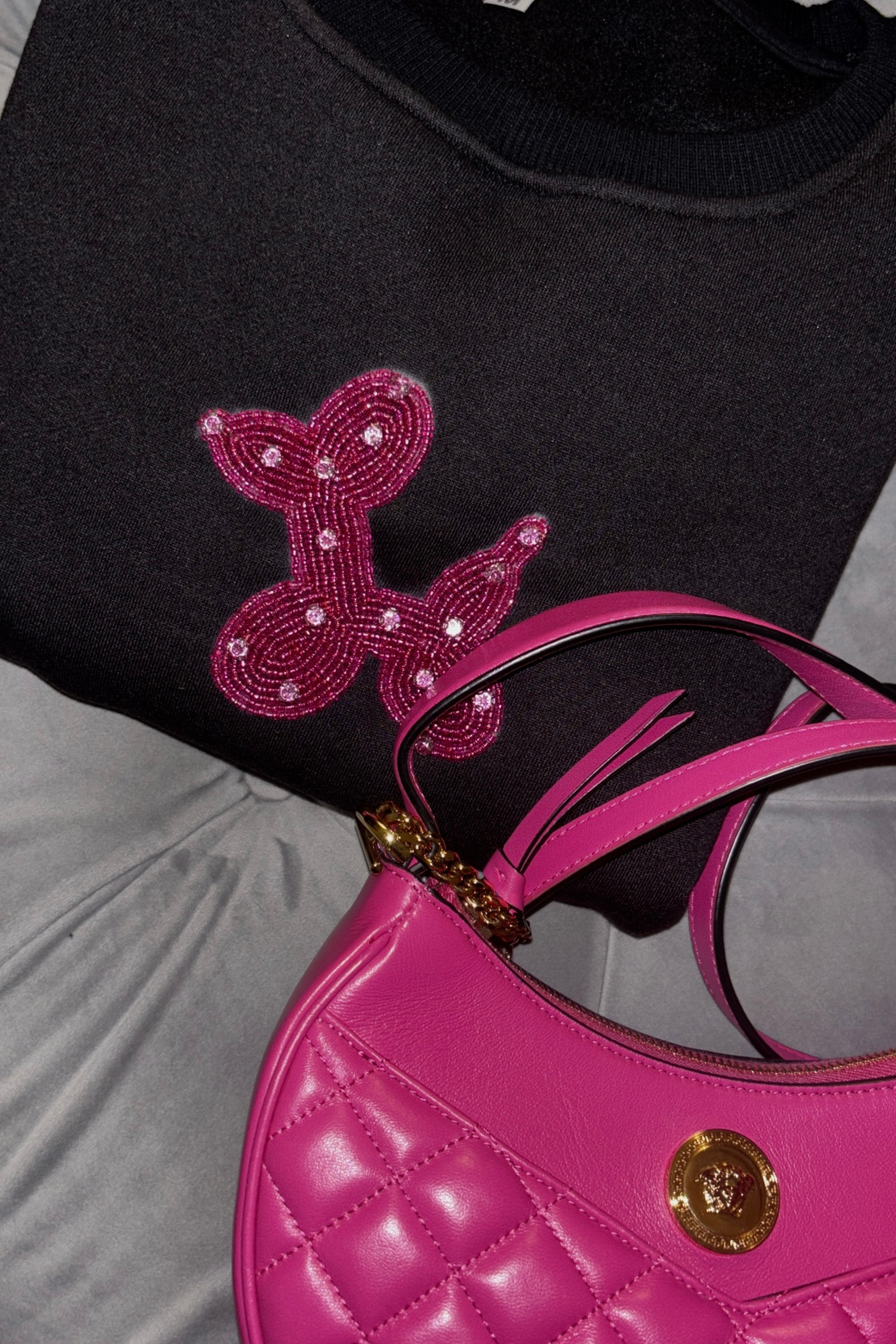 Design: Hand-embroidered Chic Pup motif